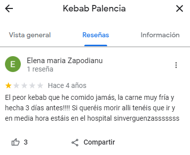 En esta, lo divertido no es la reseña en si, sino la respuesta del dueño del negocio 🤣