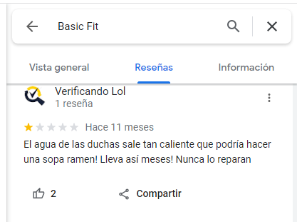 Las reseñas que pueden dejar cargadas de humor en fichas de negocio de gimnasios es impresionante, a continuación algunas imágenes.